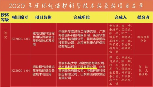 近日,中國環(huán)境科學(xué)學(xué)會發(fā)布公告:根據(jù)《環(huán)境保護(hù)科學(xué)獎(jiǎng)勵(lì)辦法》的規(guī)定,經(jīng)有關(guān)專家、單位和專家評審,并通過廣泛公示,環(huán)境保護(hù)科學(xué)技術(shù)獎(jiǎng)勵(lì)委員會共批準(zhǔn)44個(gè)項(xiàng)目獲“2020年度環(huán)境保護(hù)科學(xué)技術(shù)獎(jiǎng)”。其中,北京北科環(huán)境工程有限公司(以下簡稱:北科環(huán)境)參與完成的“鋼鐵煙氣超低排放多功能耦合關(guān)鍵技術(shù)與應(yīng)用”項(xiàng)目,獲得“2020年度環(huán)境保護(hù)科學(xué)技術(shù)獎(jiǎng)”一等獎(jiǎng)。