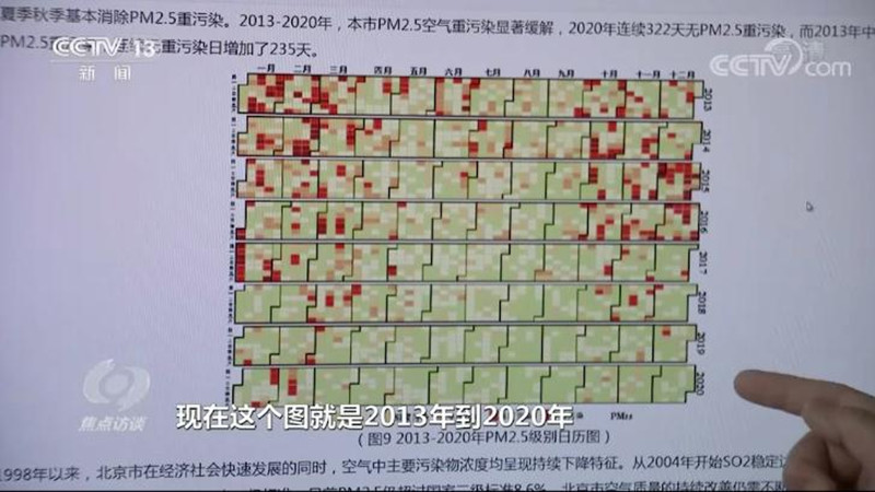 另外,人們關(guān)注的PM2.5濃度也下降了。李翔說:“2020年P(guān)M2.5濃度下降到38微克每立方米,比2013年的89.5微克下降了57%多?!?/span>